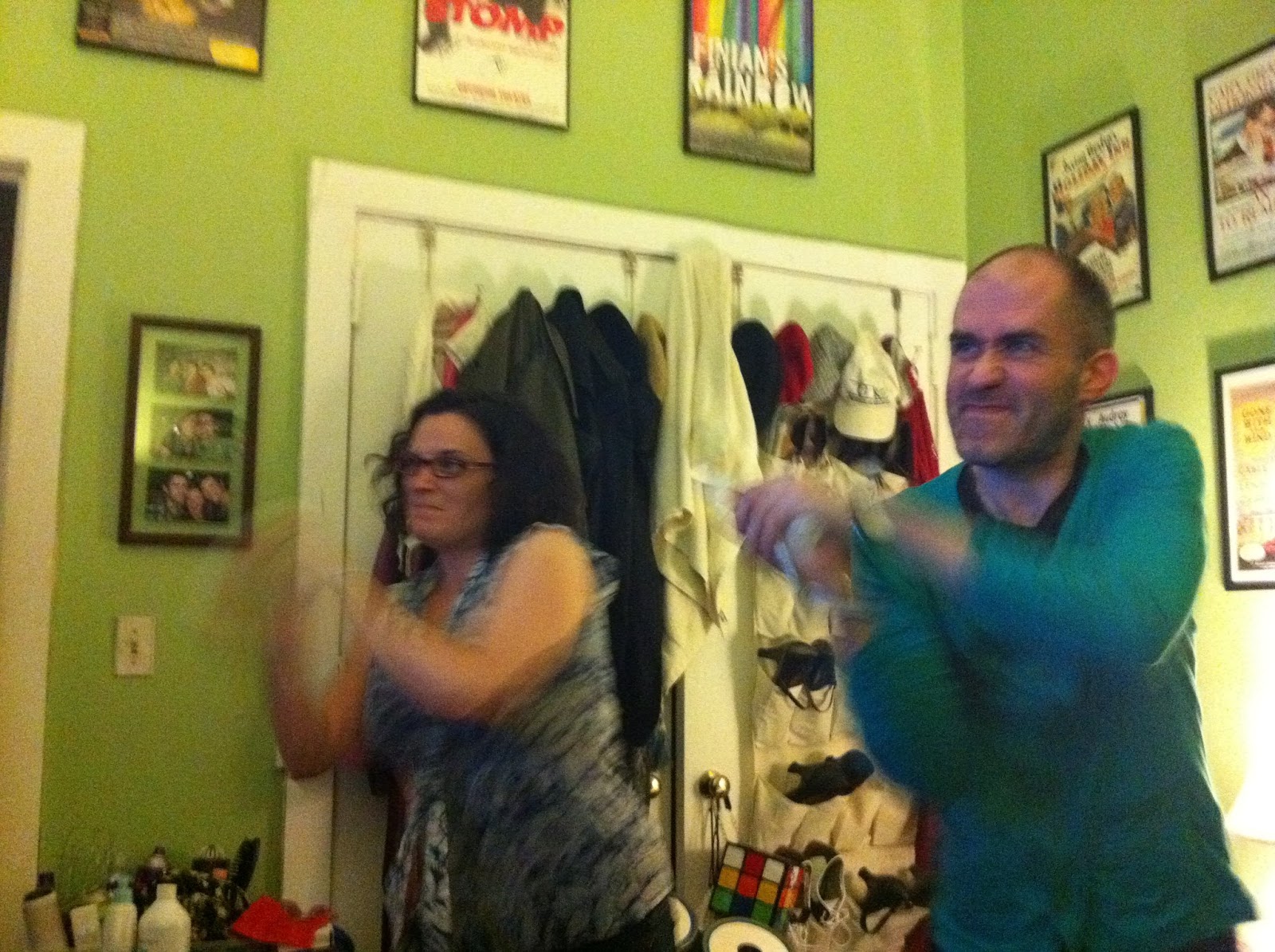 | My sister and my roommate sword fighting on Wii. I almost cried they made me laugh so hard! |