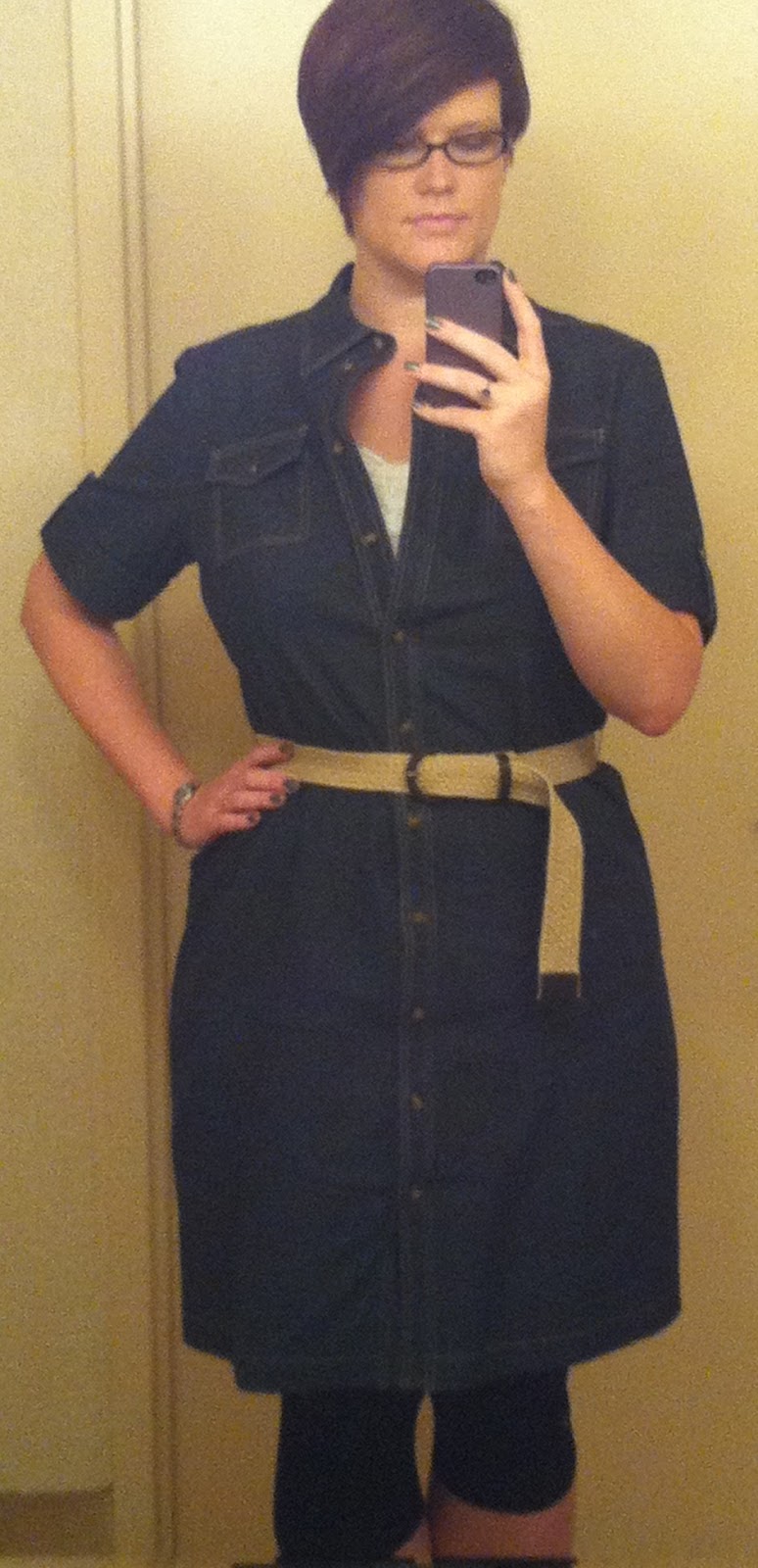 On the way out, Katie and I decided to stop by the Ladies department to see if this particular Ralph Lauren dress was in that department (it was!) and I tried it on. Everything about the XL dress looked better on me than the 1X dress that I had tried on upstairs. It even made me feel better!